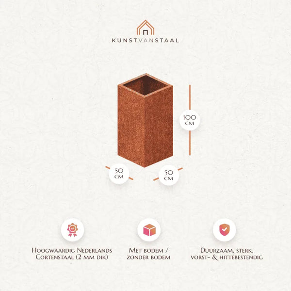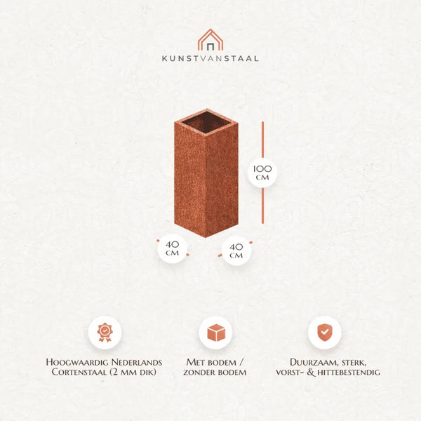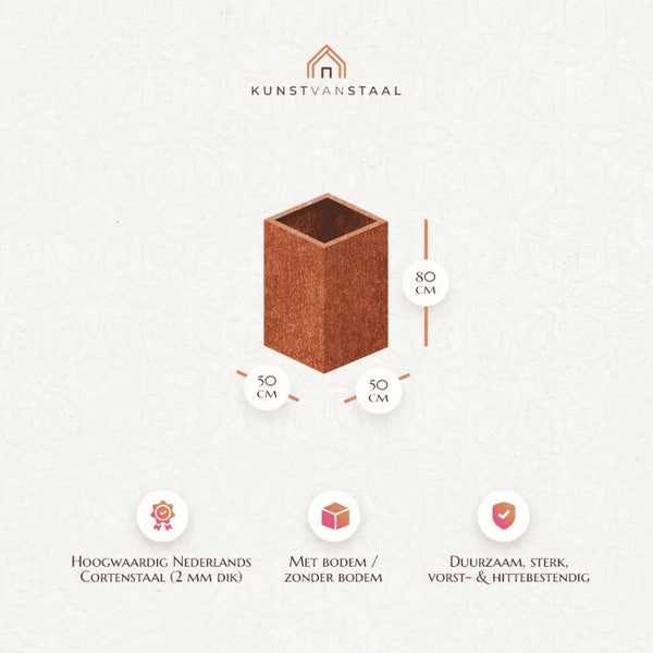 Cortenstaal plantenbak 99 x 99 x H 55 cm
