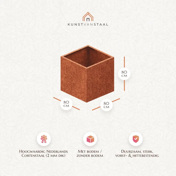 Cortenstaal plantenbak 120 x 120 x H 60 cm