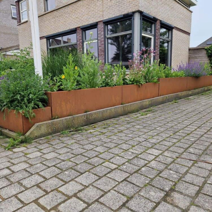 De Cortenstaal plantenbak 130 x 70 x H 50 cm biedt een stijlvolle en duurzame oplossing voor je tuin, met een natuurlijke roestlaag die je planten perfect tot hun recht laat komen. Deze robuuste bak is weerbestendig en onderhoudsarm, ideaal voor elk buitenproject.