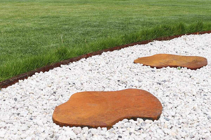 Met deze organisch gevormde cortenstaal staptegels geeft u uw tuin een elegante en natuurlijke uitstraling. Het vloeiende ontwerp zonder hoeken laat de stapstenen harmonieus opgaan in elke buitenruimte, terwijl de warme roestbruine kleur van het cortenstaal de natuurlijke sfeer versterkt. Deze unieke staptegels zijn ideaal voor het aanleggen van een comfortabel looppad op gras, grind of aarde. De afmetingen van 53,5 x 44,5 cm zorgen voor een perfecte balans tussen functionaliteit en esthetiek. De tegels zijn voorzien van een handige opstaande rand van 2 cm aan de onderzijde, waarmee u ze stevig in de grond kunt drukken. Hierdoor blijven ze op hun plek en verschuiven ze niet, zelfs bij intensief gebruik. Wanneer u de tegels op gelijke hoogte met het maaiveld plaatst, kunt u er bovendien eenvoudig overheen maaien. Dit maakt ze niet alleen mooi, maar ook praktisch in onderhoud. Cortenstaal is een bijzonder duurzaam materiaal, dankzij de unieke legering van ijzer met koper, fosfor, silicium, nikkel en chroom. Tijdens blootstelling aan de elementen vormt zich een natuurlijke roestlaag die het staal beschermt tegen verdere corrosie. Dit maakt de staptegels ijzersterk, onderhoudsarm en uitzonderlijk duurzaam. Let wel, tijdens het roestproces kunnen de tegels tijdelijk wat afgeven. Dit proces duurt normaal enkele maanden, maar met onze roestversneller bereikt u binnen enkele uren de karakteristieke, volledig uitgeroeste look. Bestel deze stijlvolle en duurzame cortenstaal staptegels eenvoudig online bij Kunst van Staal. Als u op zoek bent naar een meer strakke uitstraling, bekijk dan ook onze rechthoekige stapstenen. Daarnaast vindt u bij ons een breed assortiment cortenstalen producten, zoals borderranden, plantenbakken en tuinschermen, om uw tuin compleet te maken. Dankzij onze snelle levering kunt u direct aan de slag en geniet u binnen no-time van een prachtig looppad dat uw tuin naar een hoger niveau tilt.