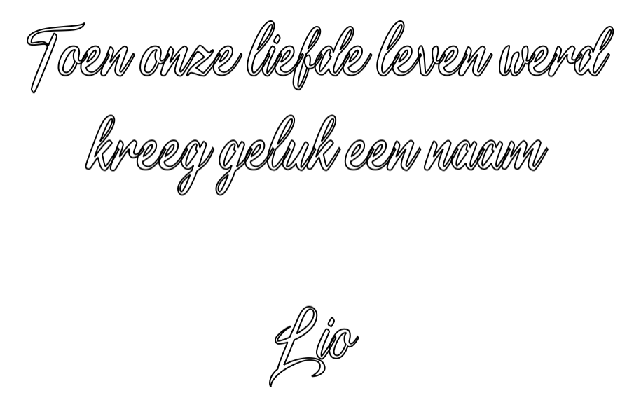 Text: Toen onze liefde leven werd kreeg geluk een naam Lio
