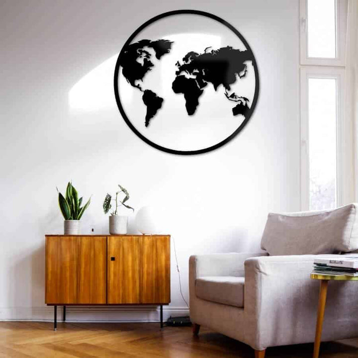 Metalen wanddecoratie "Wereldbol" Wereldbol - Wanddecoratie van Metaal | Productspecificaties Wanddecoratie van Metaal Geeft een industriële uitstraling 2 mm dik hoogwaardig staal Afwerking: zwarte poedercoat Het product is geschikt voor binnen én buiten gebruik Product Afmetingen (diameter): "Wereldbol_Metaal_L" | Ø 60 cm Mét boutgaten Eenvoudig op te hangen Montageset wordt meegeleverd Het product staat ongeveer 1 cm van de muur af voor een driedimensionaal effect Gratis verzending binnen Nederland België. Heeft u nog vragen of opmerkingen? Neem dan contact met ons op via: info@kunstvanstaal.nl